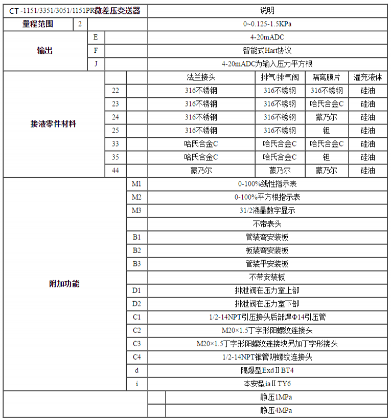 1151/3351/3051/1151PR微差壓變送器的關(guān)鍵原材料、元器件和零部件均源自進(jìn)口或合資生產(chǎn),整機(jī)經(jīng)過嚴(yán)格組裝和測試。該產(chǎn)品具有設(shè)計原理先進(jìn)、品種規(guī)格齊全、安裝使用簡便等特點(diǎn)。由于該機(jī)型外觀上完全融合了目前國內(nèi)*為流行,并被廣泛使用的兩種變送器(羅斯蒙特3051與橫河EJA)的結(jié)構(gòu)優(yōu)點(diǎn),讓使用者有耳目一新的感覺,并具有很強(qiáng)的通用性和替代能力。為適合國內(nèi)自動化水平的不斷提高和發(fā)展,該系列產(chǎn)品除設(shè)計小巧精致外,更推出具有HART現(xiàn)場總線協(xié)議的智能化功能。
